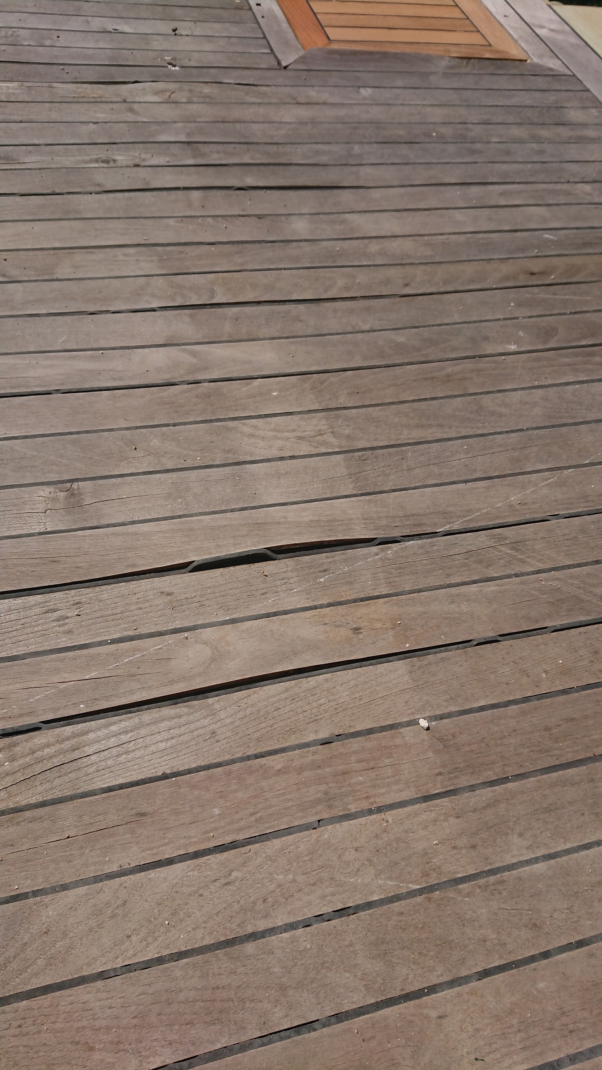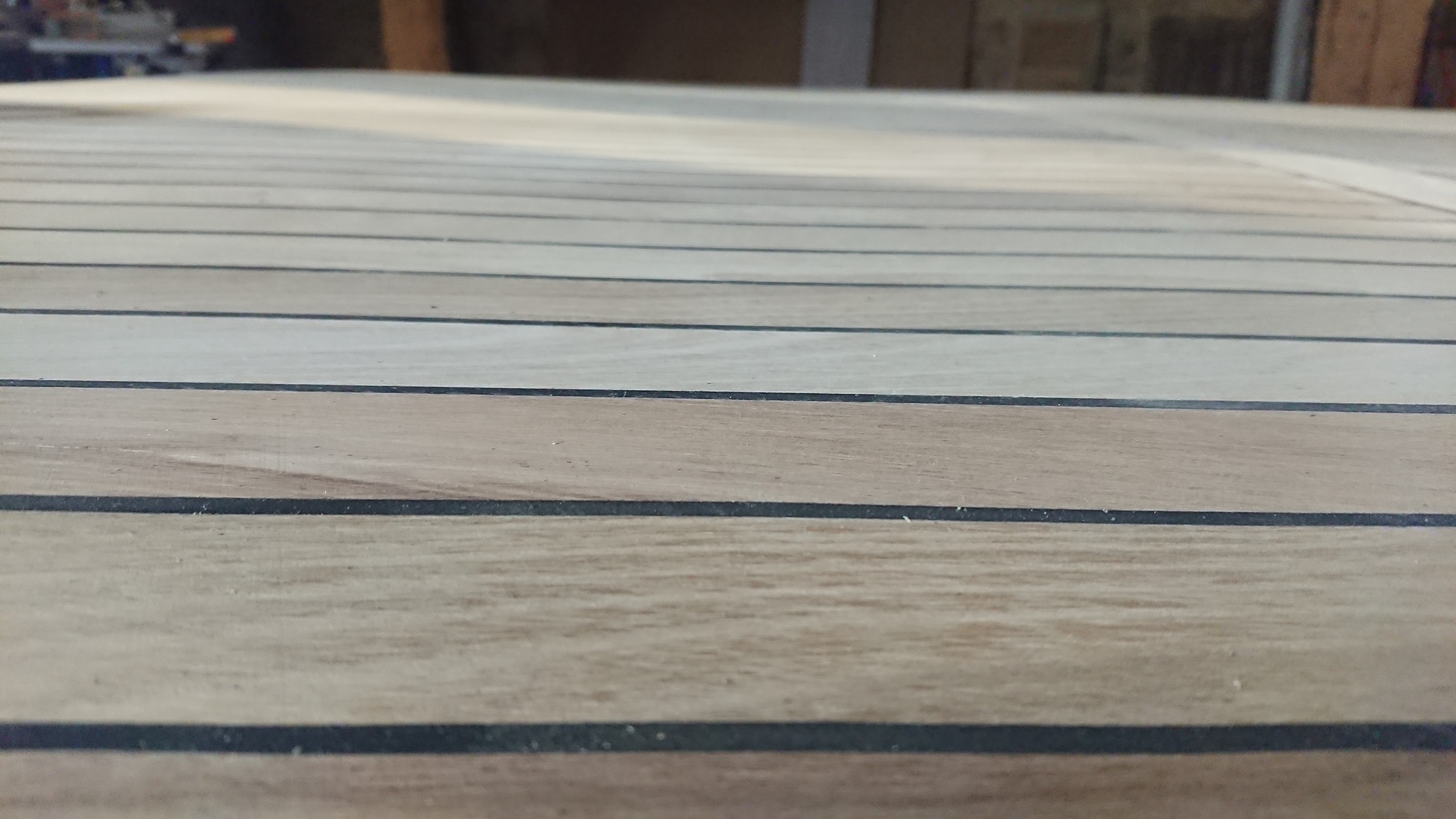 Quand on parle de ponts et autres passages sur un bateau, vient tout de suite la problématique du revêtement. Idéalement, il est agréable à l’oeil, antidérapant, sans pour autant vous arracher la peau des pieds ou des fesses, pas trop chaud en été et facile à nettoyer. Après nos déboires et même si je n’aime toujours pas beaucoup, je comprend mieux l’option gazon synthétique qu’on voit parfois sur certains bateaux. Oui mais non, avec des chiens, leurs poils surtout, ce n’est pas une idée à retenir.