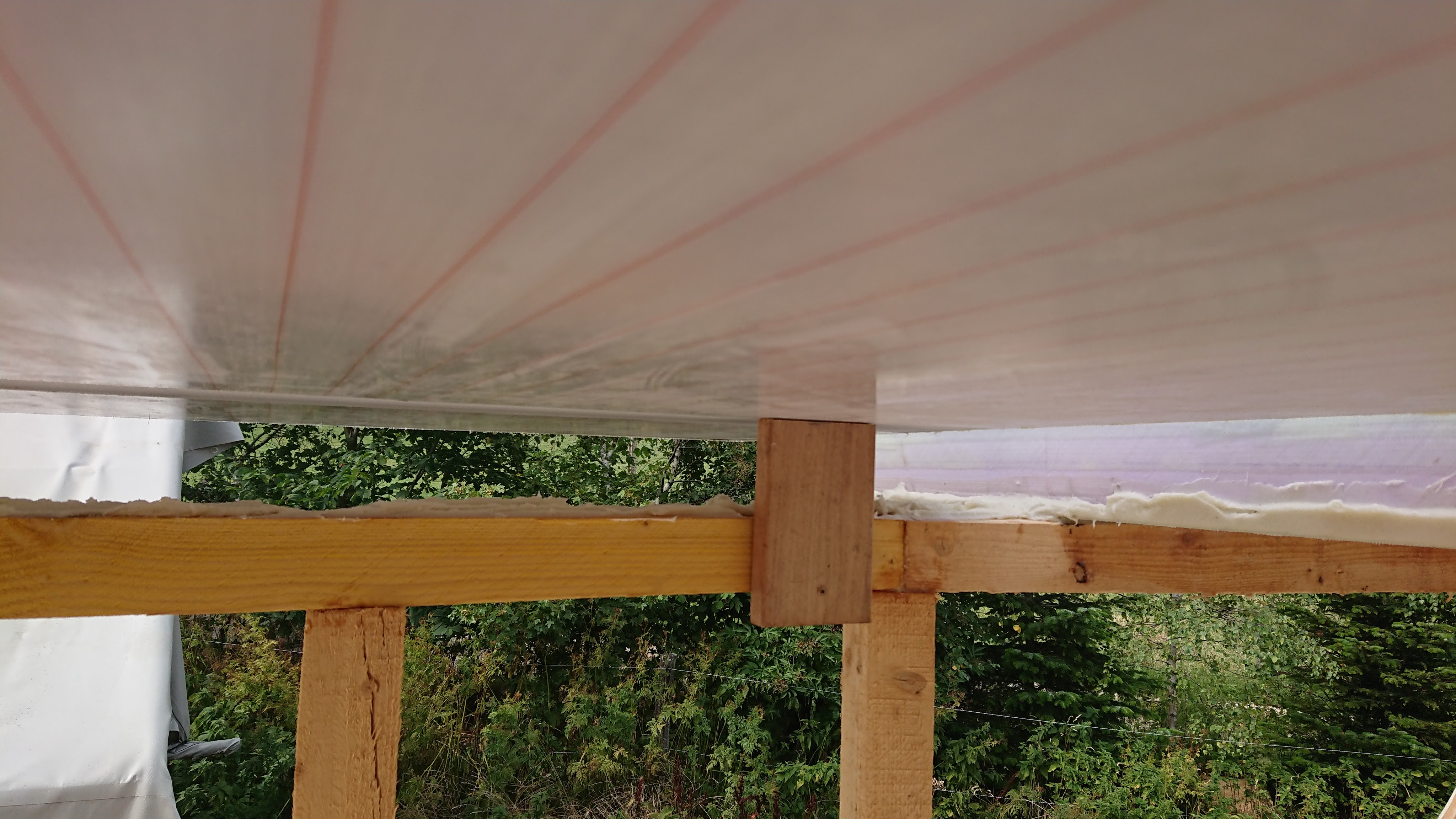 Puisqu’il faut tout refaire, autant essayer de le faire avec le moins de travail possible. Nous abandonnons les petites cales en plastiques à viser. En principe, il faut en mettre entre chaque lame et espacées de 10-15 cm, ce qui fait énormément de vis à visser et dévisser. Nous testons un autre procédé qui va s’avérer très bien.