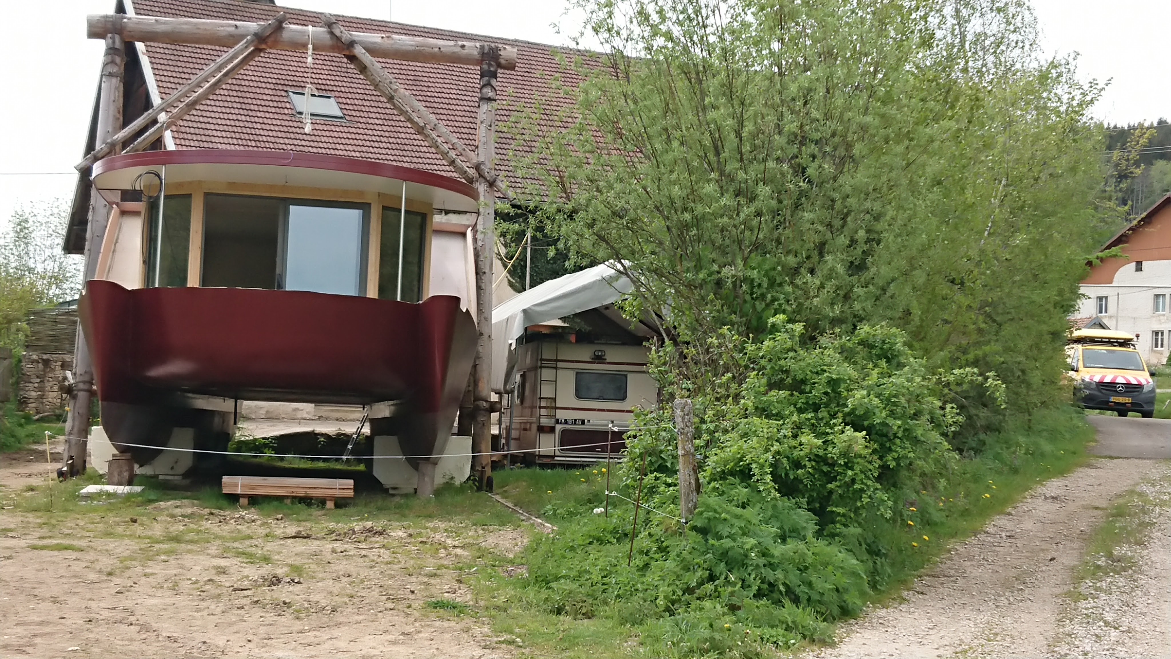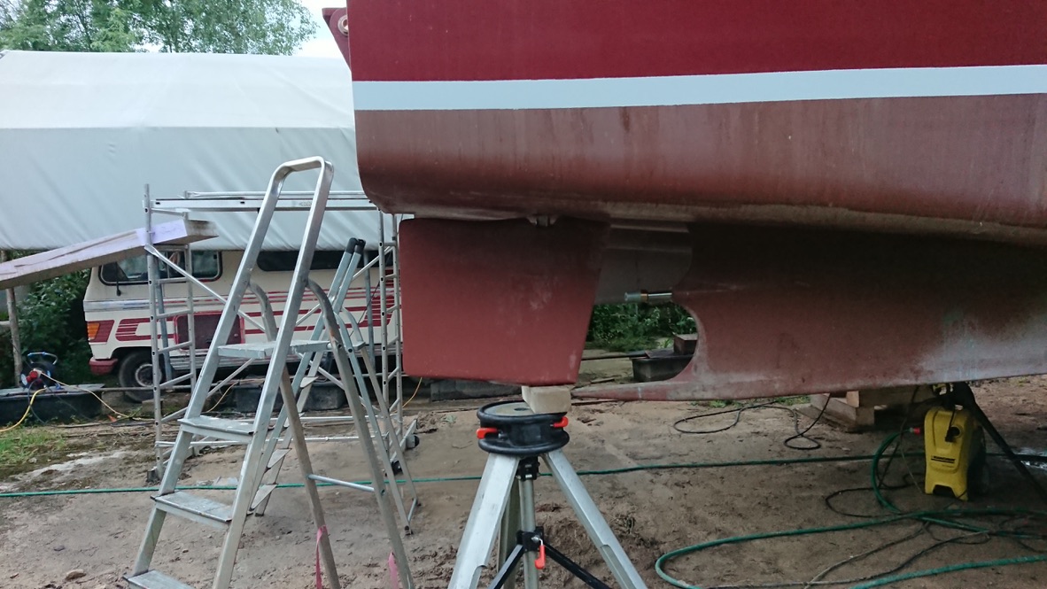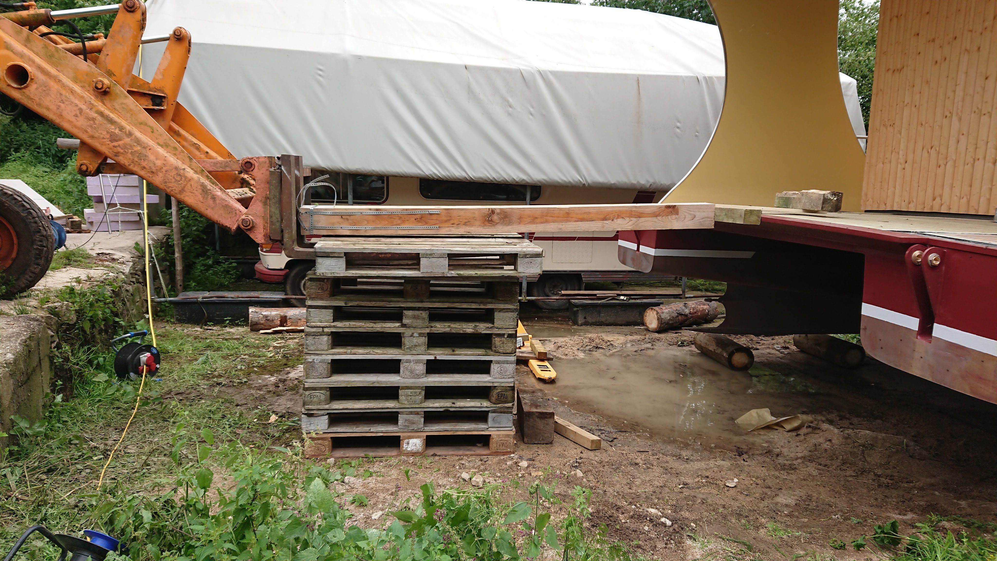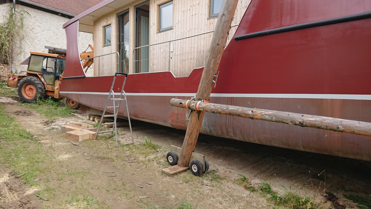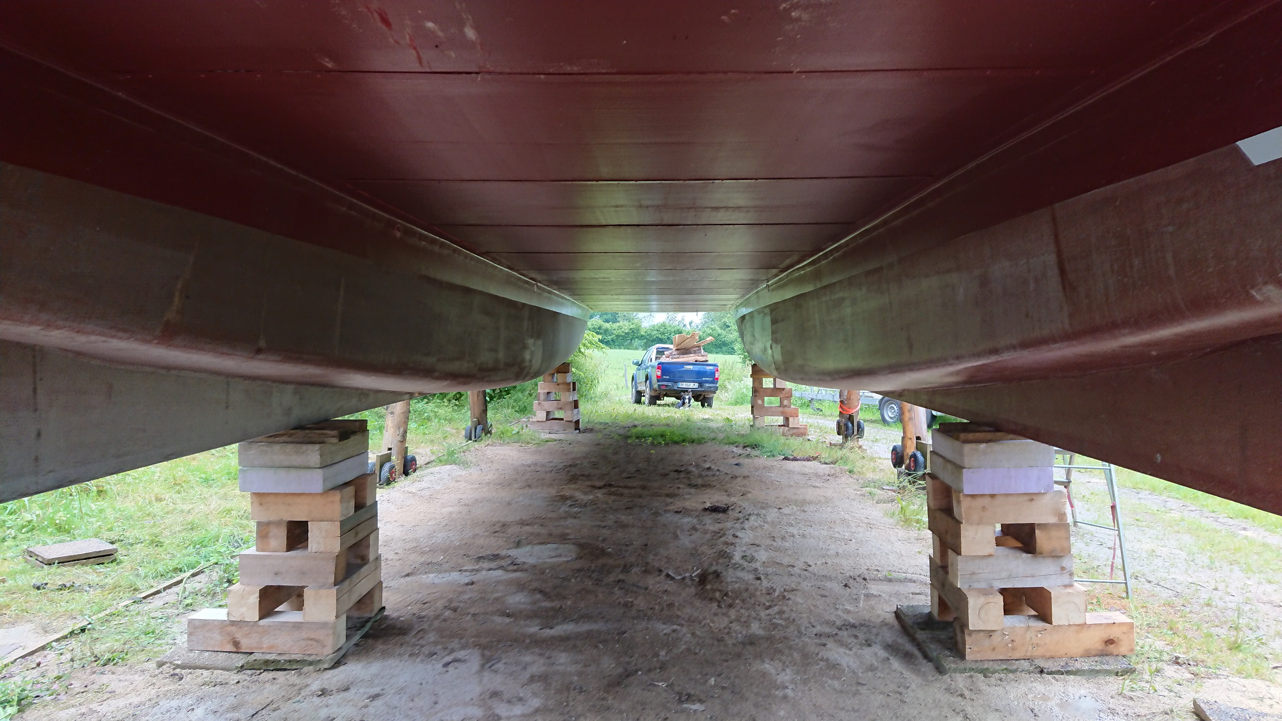 Petite visite du chantier par le transporteur Hollandais Van de Wetering pour organiser le transport bateau. La sortie du chantier ne va pas être facile, il va falloir élaguer quelques arbres, enlever quelques dizaines de mètres de clôtures, avancer le bateau de 3 mètres et surtout le lever d’un bon mètre pour permettre au camion de se glisser dessous. Le transport est prévu pour fin juin 2024.