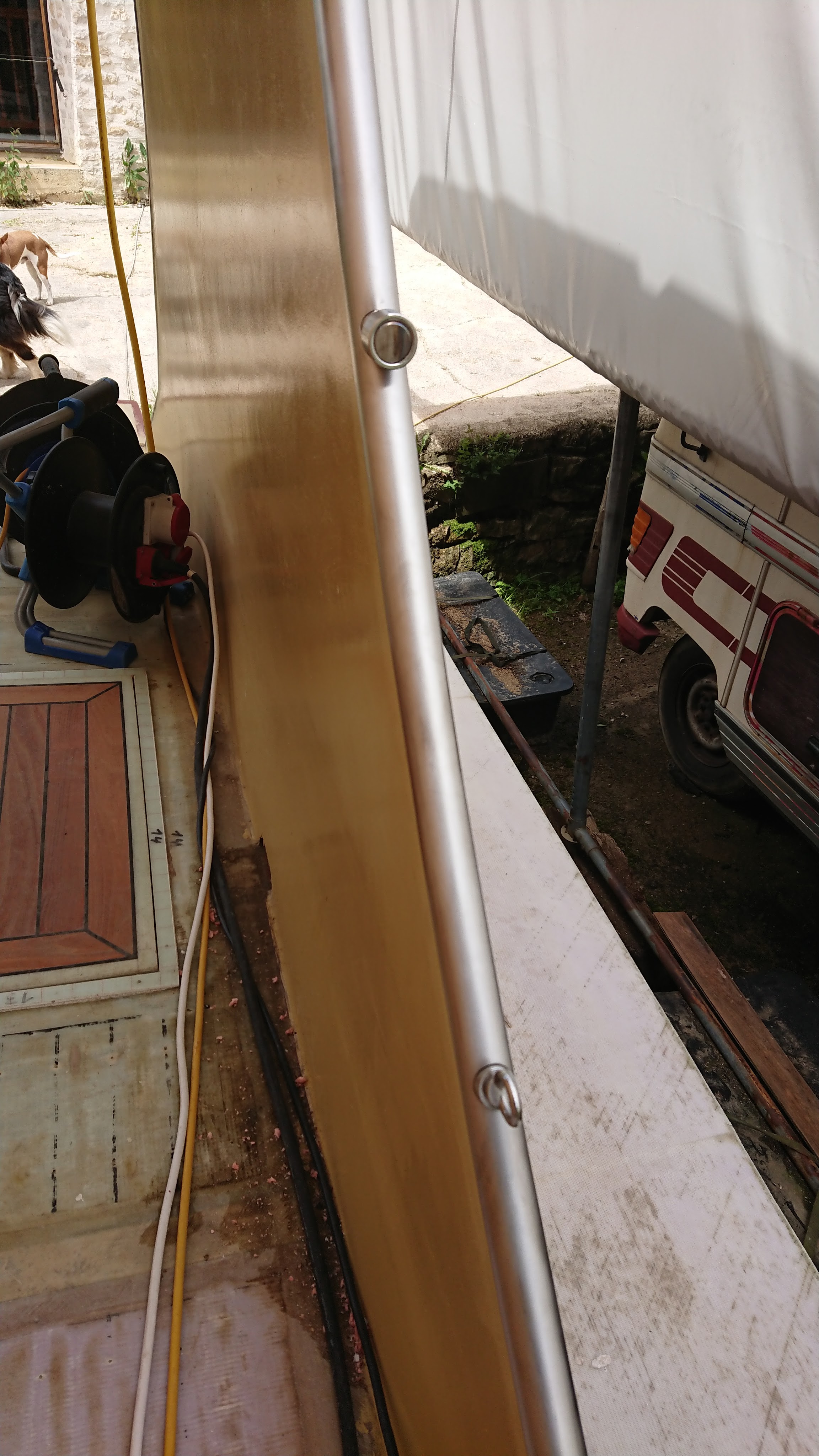 Le pont supérieur qui se décolle de partout, lui aussi. Mais nous n’avons plus le temps et surtout plus l’énergie pour le refaire avant la mise à l’eau. Il sera démonté cet automne ou au printemps prochain.