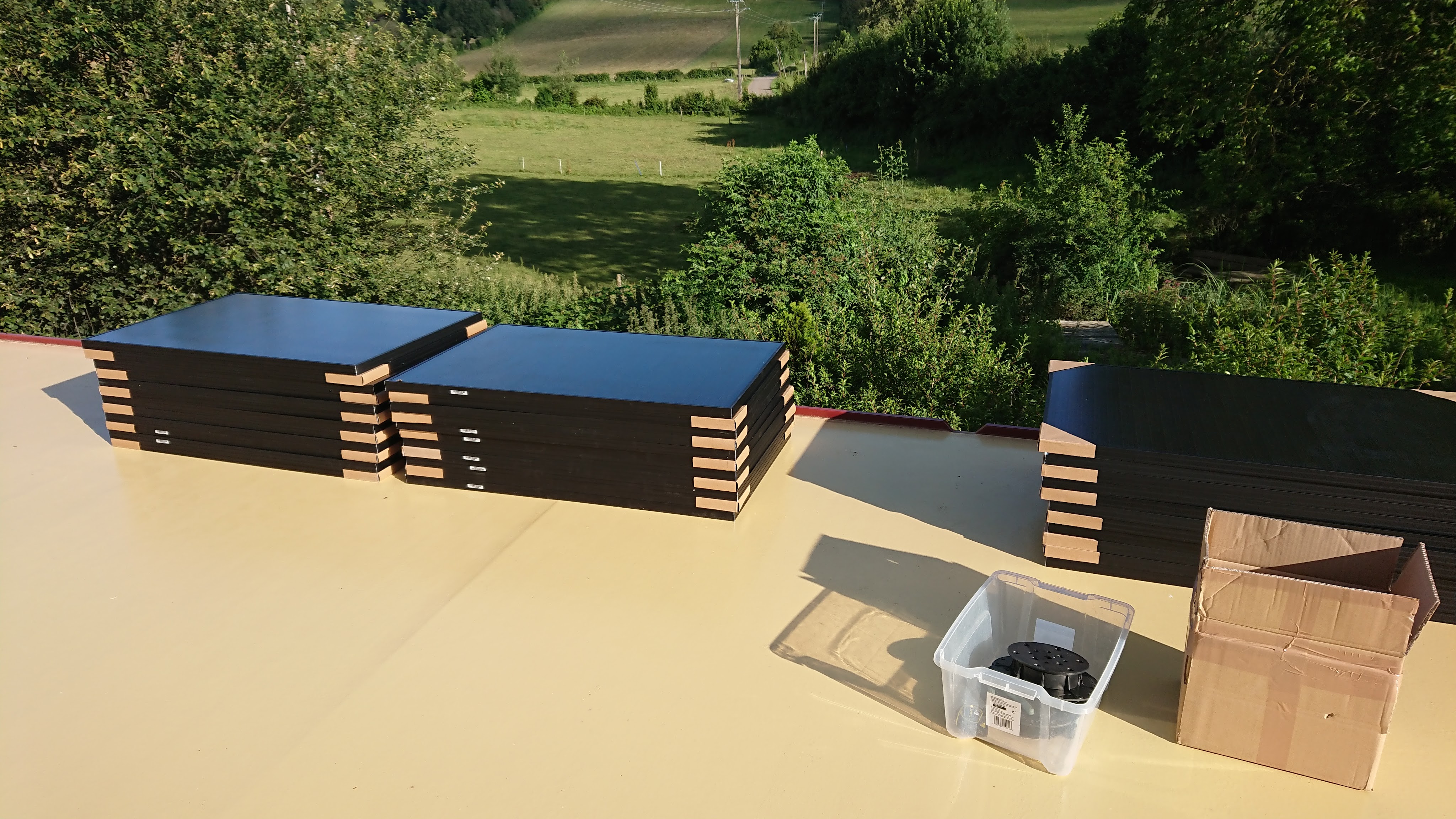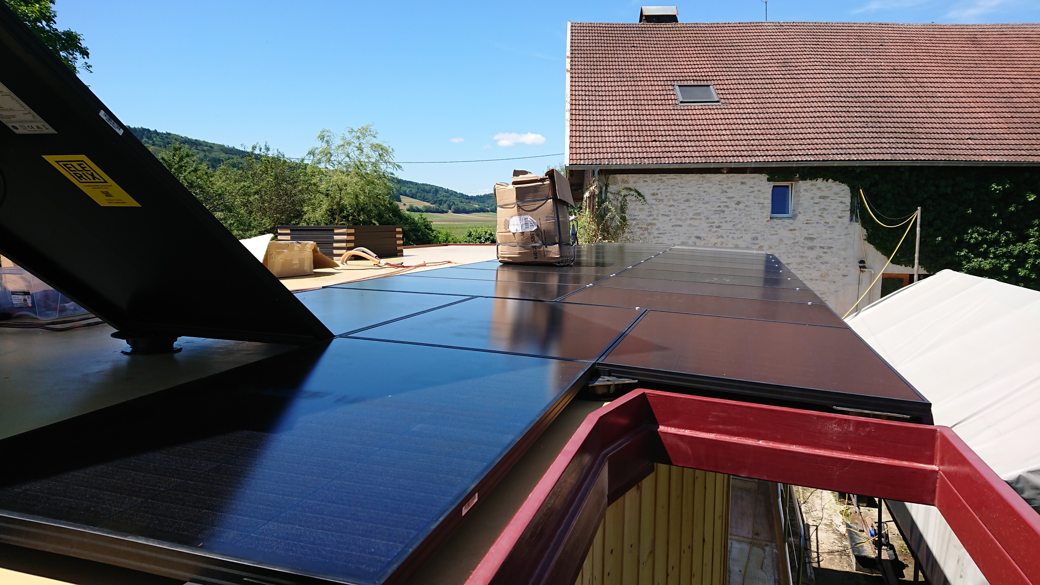 Installation des 54 capteurs solaires. Par la suite, il y en aura 16 de plus.